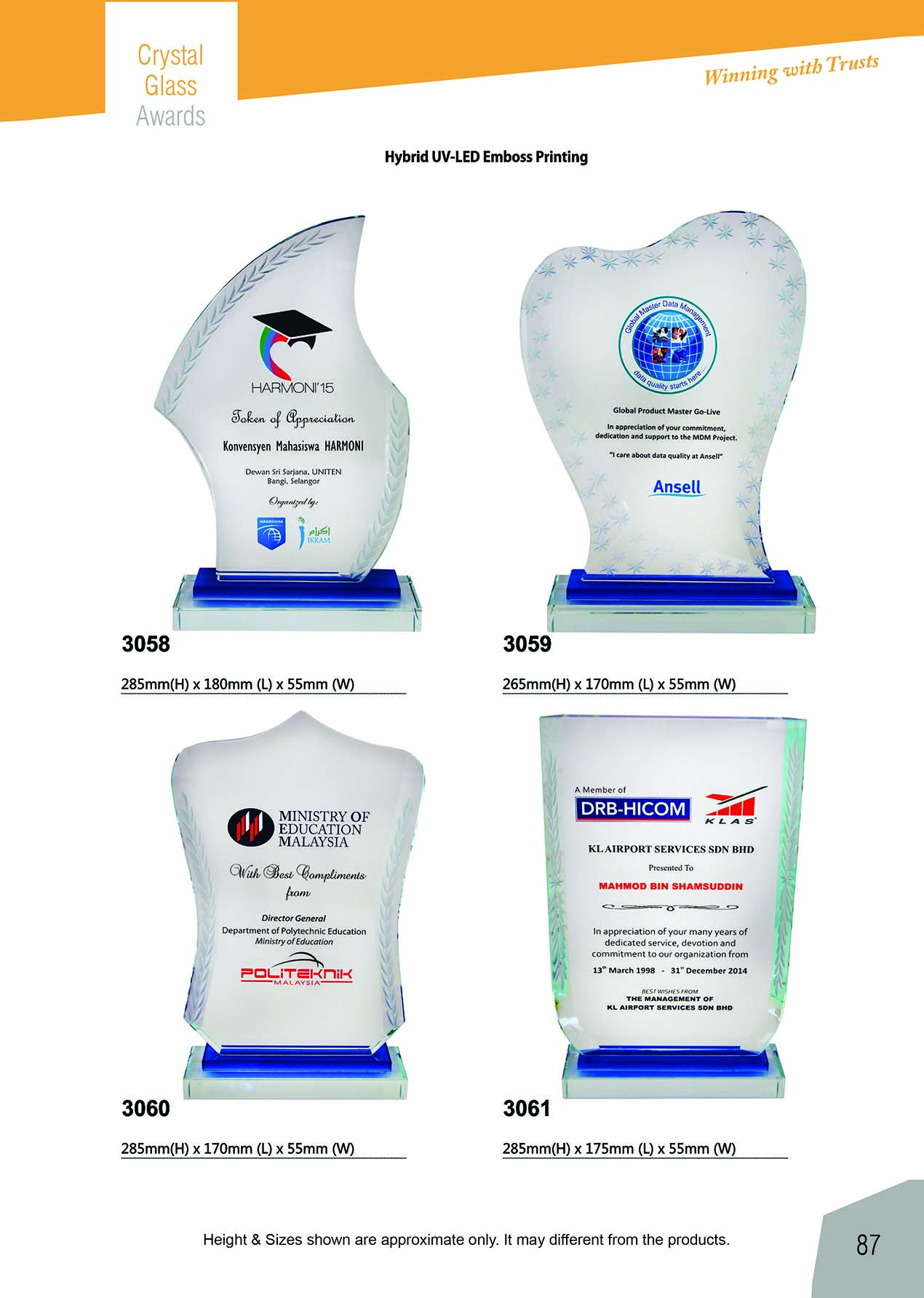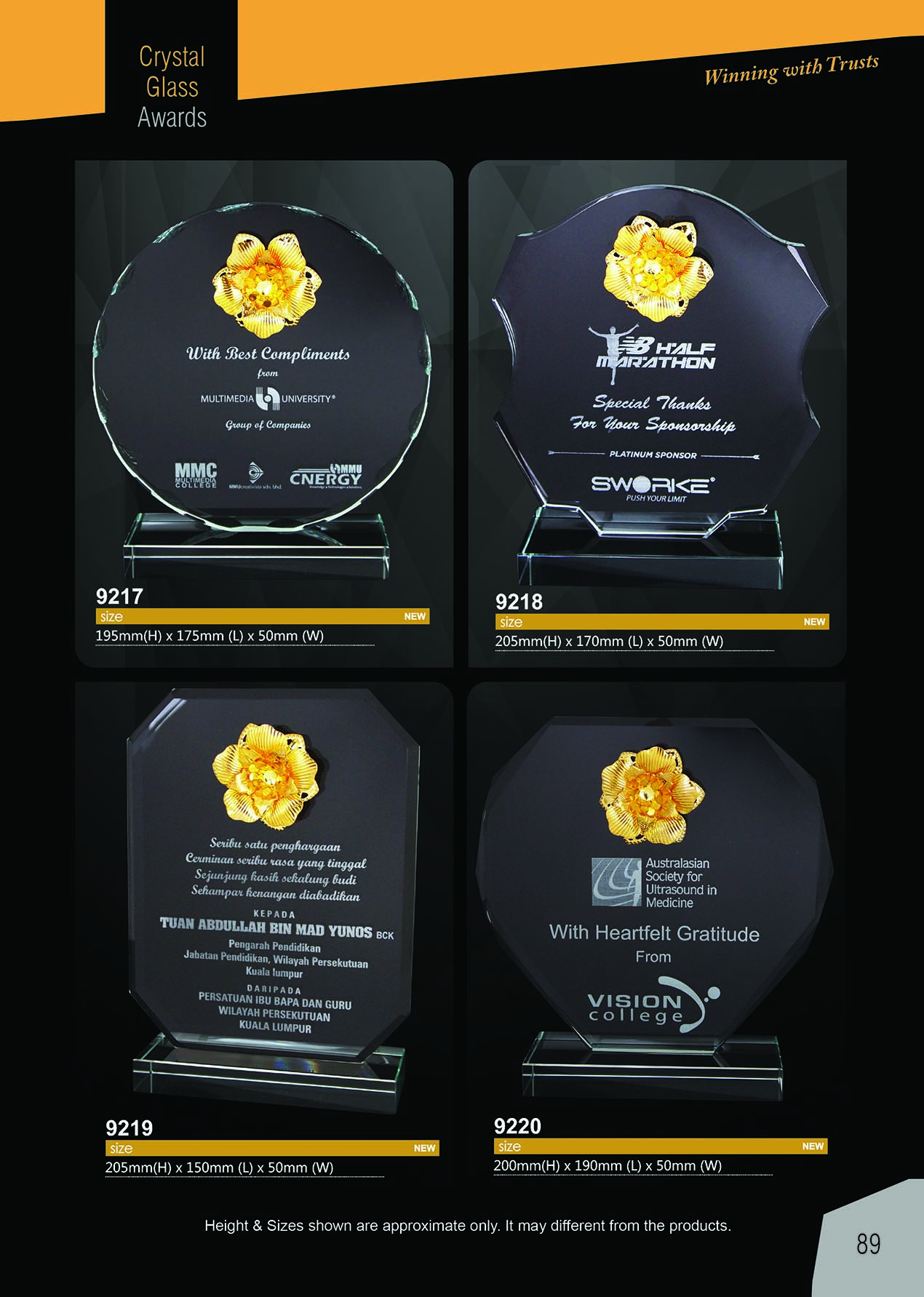 EXCLUSIVE CRYSTAL AWARDS / 优质水晶奖